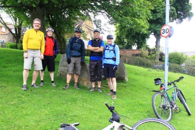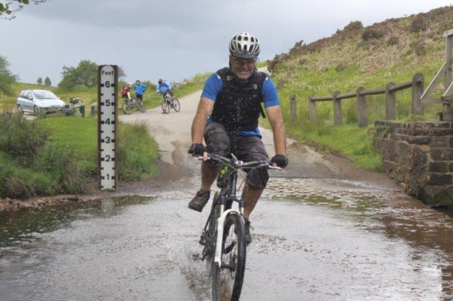 We had to push our bikes over Jack Sledge path now but we were rewarded for our efforts once over the top as we all bombed down to the Moors visitor centre pausing only for a pic at Duck Bridge. More cups of tea and cake. Yum yum! Now the final stretch beckoned and we were all up for it, apart from me as I was starting to feel the strain a bit by now. However we all managed to stay together on the last section despite a head wind and arrived back in Commondale at 4:00pm. Smashing!