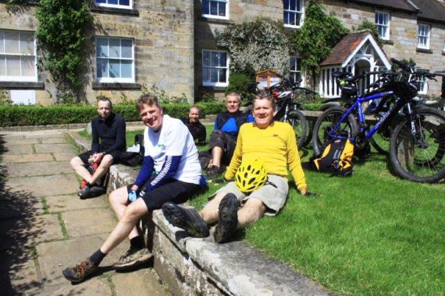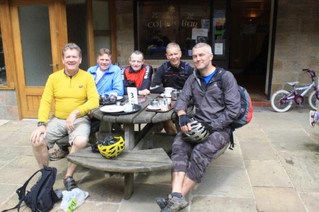 We pushed on through a hard section climbing up the road to Westerdale and over Blakey Rigg and down into Botton village to arrive at 12:45pm, just in time for lunch at the village café. However, some confusion arose when asking the creamery chappy the whereabouts of the café we were told "it's closed between 12:00 and 2:30! What?? However, completely ignoring this advice, after all we are all bonafide Smellies, we went into the café anyway to find that it was open and doing business. This was obviously a cunning rouse to put off strangers on bicycles from having a cup of tea in their café! There's no fooling us towniees like.
